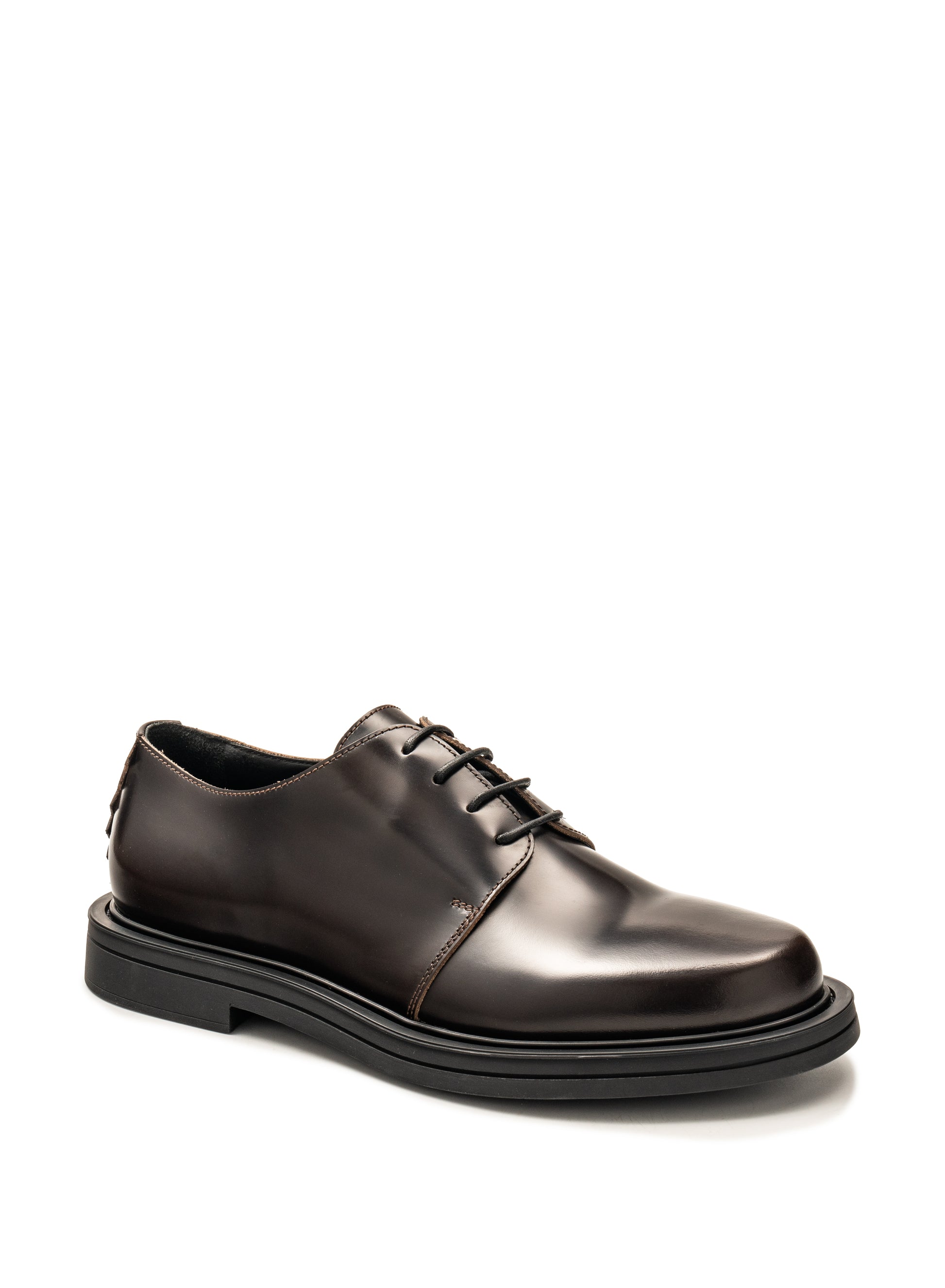 Derby, dark brown calf leather. Black eva extralight outsole.